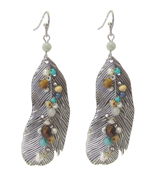 MULTI SEED BEAD METAL FEATHER EARRING