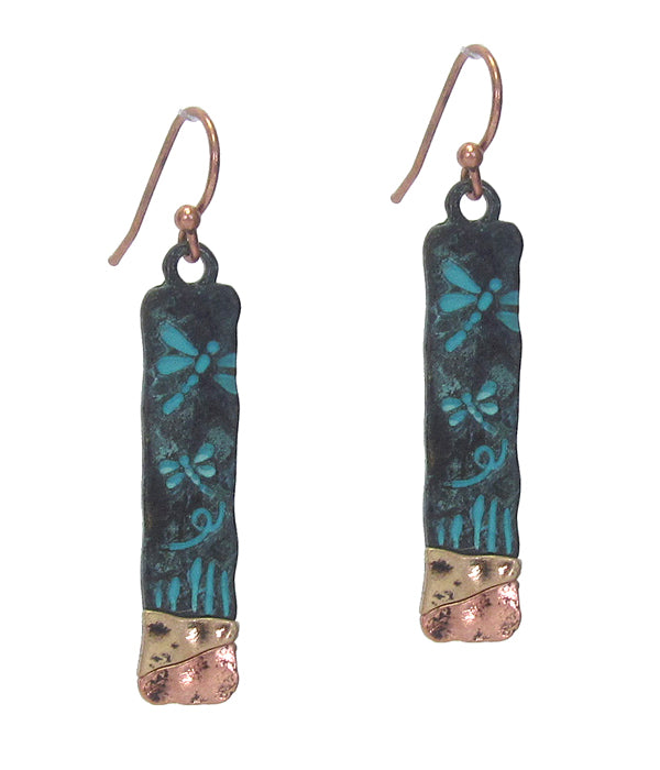 DRAGONFLY METAL BAR EARRING : Size- 1/4 X 1 1/8 INCHES : Color- PTMT