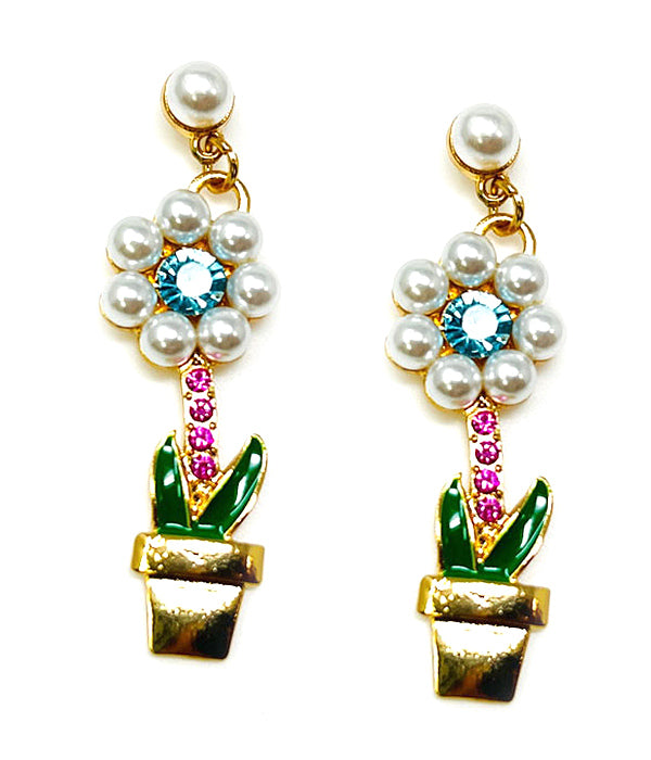 GARDEN THEME EPOXY CRYSTAL EARRING - FLOWER : Size- 1/2 X 2 INCHES : Color- GDCRAQ