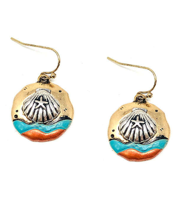 PATINA AND BURNISH TRI TONE RETRO VINTAGE EARRING - SHELL : Size- 0.75 X 0.75 INCH : Color- GBSB