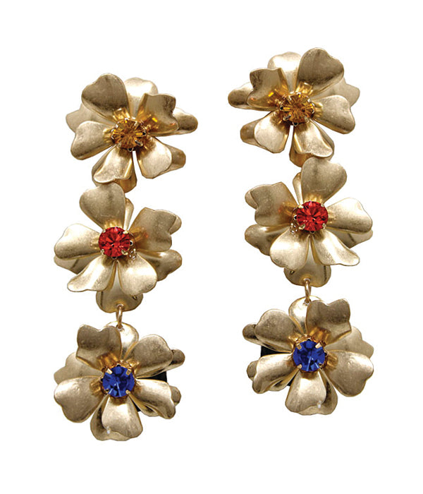 PEARL CENTER MULTI FLOWER DROP EARRING : Size- 1 X 3 INCHES : Color- WGMT