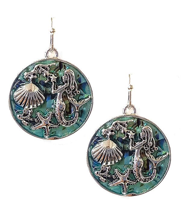 SEALIFE THEME ABALONE MERMAID EARRING : Size- 1 X 1 INCHES : Color- AS