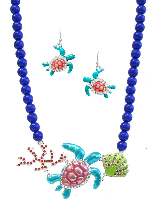 SEALIFE THEME BOLD COLOR EPOXY PENDANT NECKLACE SET - TURTLE