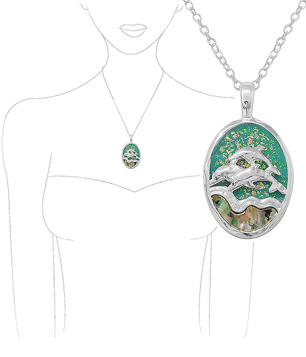 SEALIFE THEME OPAL AND ABALONE MIX PENDANT NECKLACE - DOLPHIN