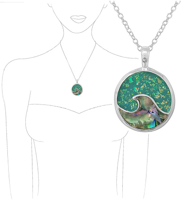 SEALIFE THEME OPAL AND ABALONE MIX PENDANT NECKLACE - WAVE