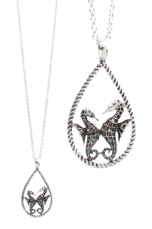 SEALIFE THEME ROPE TEXTURED TEARDROP PENDANT NECKLACE - SEAHORSE : Size- PENDANT 1 3/8 X 2 INCHES LENGTH 18 INCHES EXTEND : Color- AS